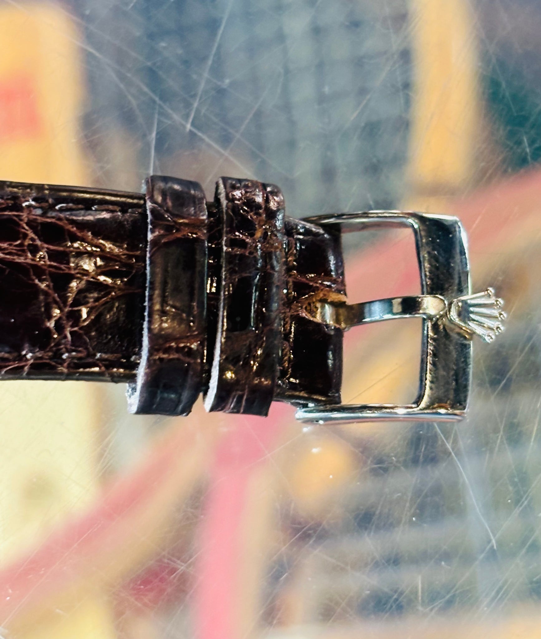 Strap: Crocodile Leather. Made in Italy. Rolex Crown Buckle.